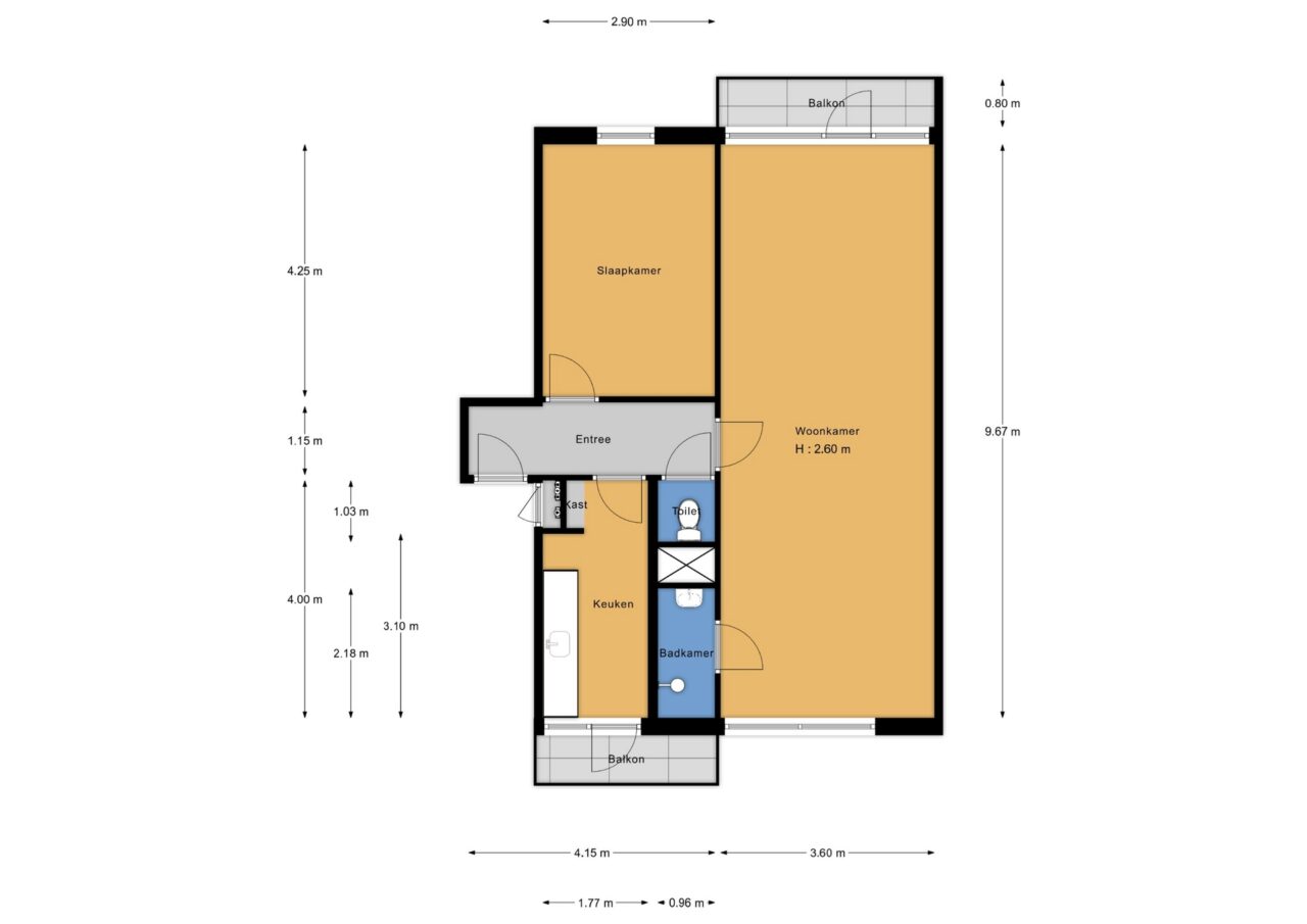 Binnenkomend kom je in de centrale hal. De woonkamer is meteen een fijne verrassing, heerlijk licht en met toegang tot het balkon op het zuiden, waar je van de zon en het vrije groene uitzicht kunt genieten. De slaapkamer is ruim en comfortabel. De keuken heeft een eigen balkon op het noorden, perfect voor een kop koffie in de ochtendzon. Verder is er een badkamer met douche en wastafelmeubel en een apart toilet in de hal.