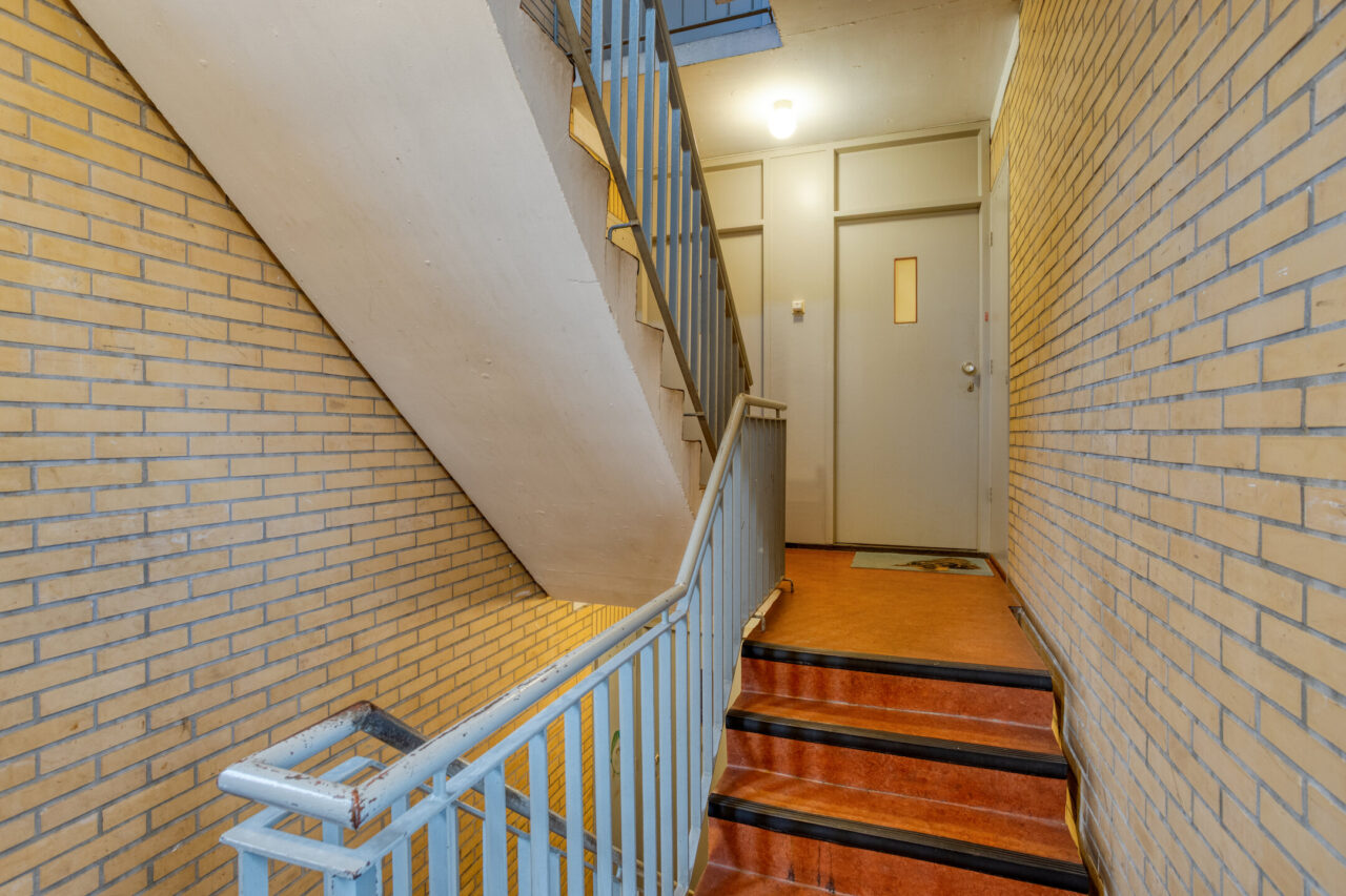 Via de buitentrap stap je het afgesloten complex binnen. Beneden vind je de royale privé berging, die door de huidige bewoners als hobby ruimte wordt gebruikt en een gezamenlijke fietsenstalling. De trap brengt je naar het appartement op de tweede woonlaag.