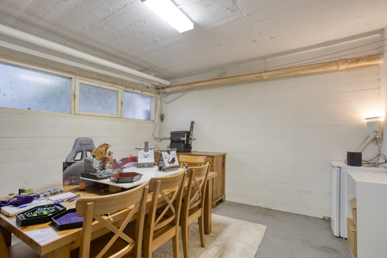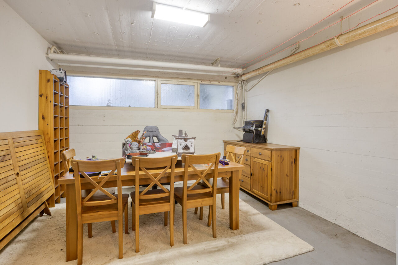 Via the external staircase you enter the secured apartment complex. On the ground floor you will find the generous private storage room, currently used by the owners as a hobby space, as well as a communal bicycle storage area. The staircase leads you up to the apartment on the second floor.