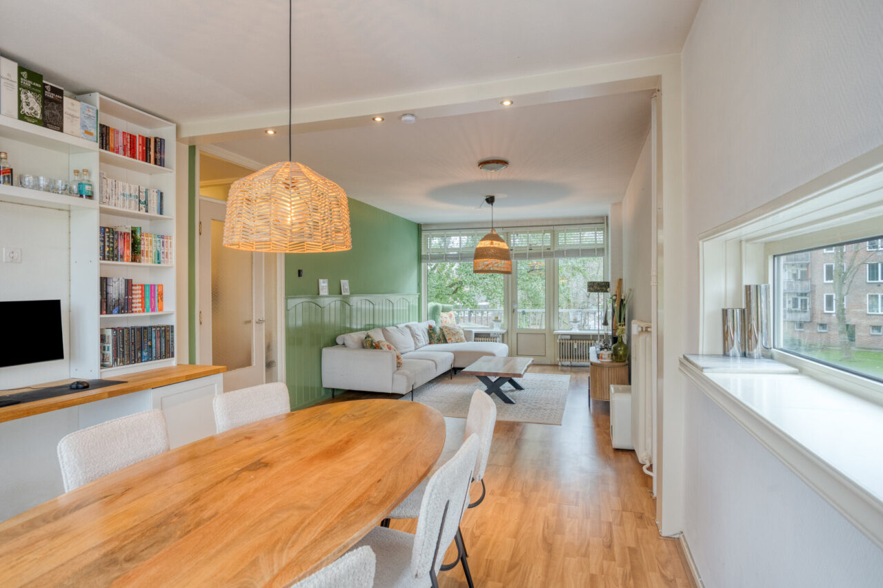Looking for a bright home with plenty of space, greenery just around the corner and all amenities within easy reach? This surprisingly spacious two room apartment, formerly three rooms, in Sinnevelt could be exactly what you are looking for. It is located on the second floor, has a living area of just over 64 square metres and, as it is a corner apartment, offers lovely open views. On the ground floor you also have a very large private storage room, ideal for cyclists and collectors.