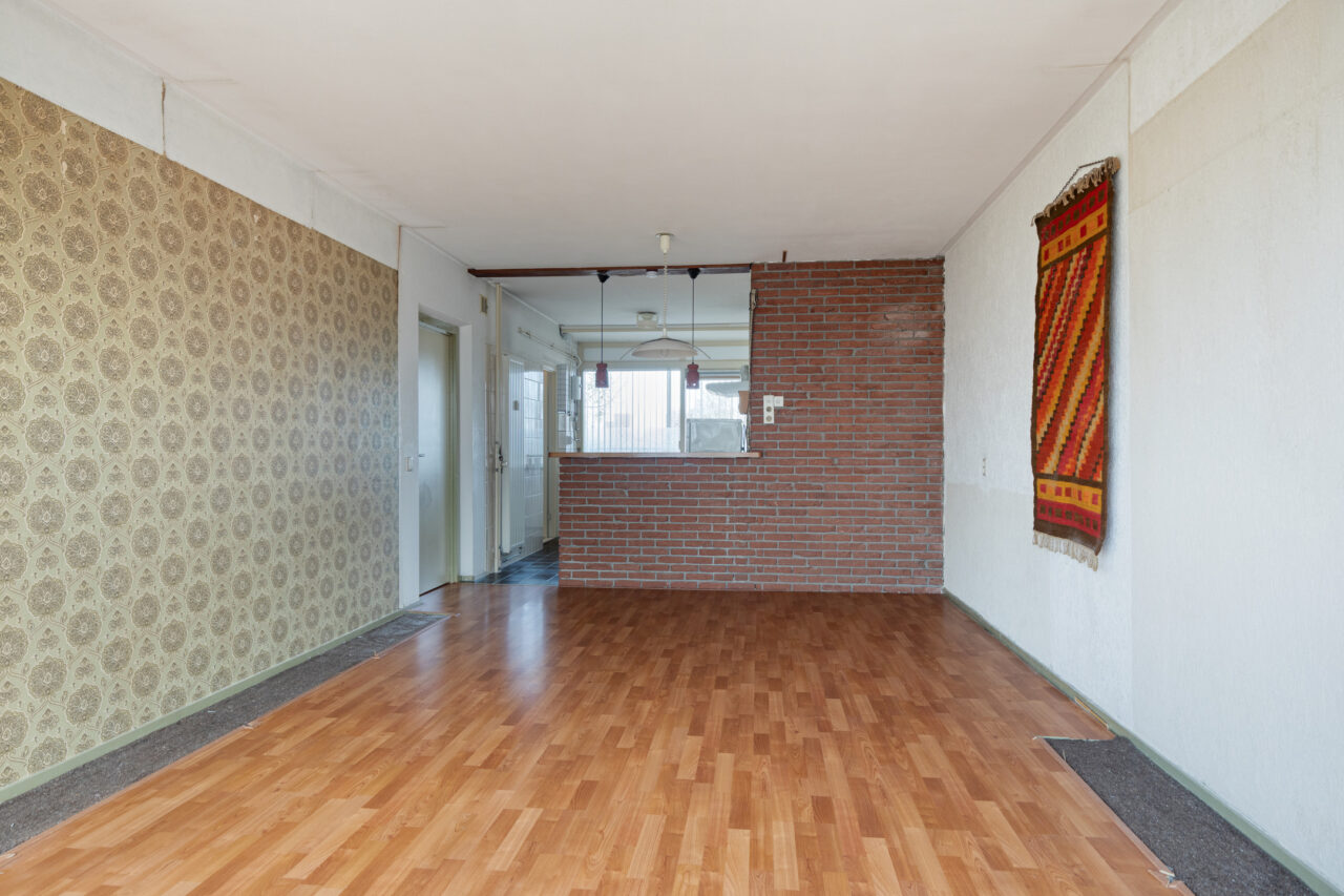 Dit ruime vierkamerappartement biedt volop mogelijkheden voor wie graag een woning helemaal naar eigen smaak wil moderniseren. Dankzij de ligging op hoogte en de grote ramen geniet je vanuit de woonkamer, het balkon en de twee slaapkamers aan de achterzijde van een prachtig weids uitzicht over het groen.