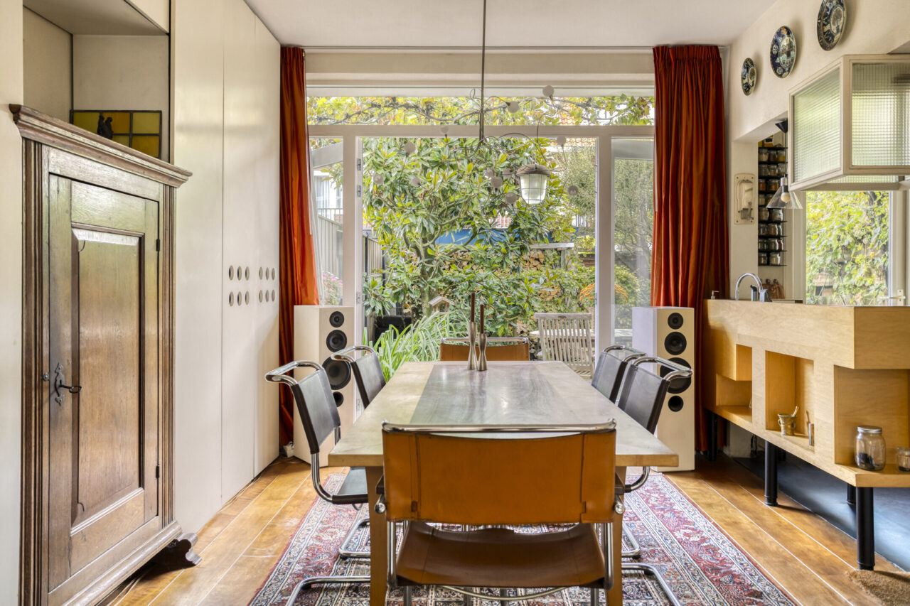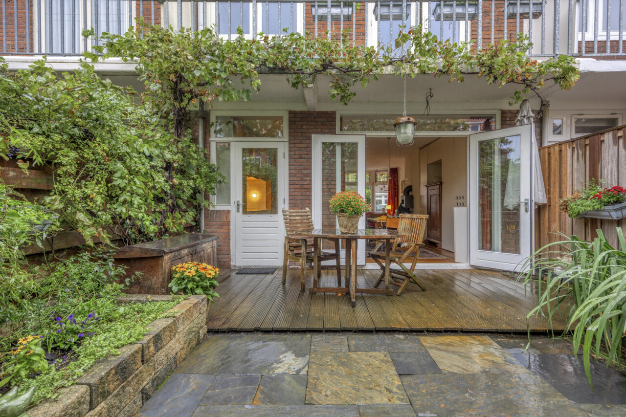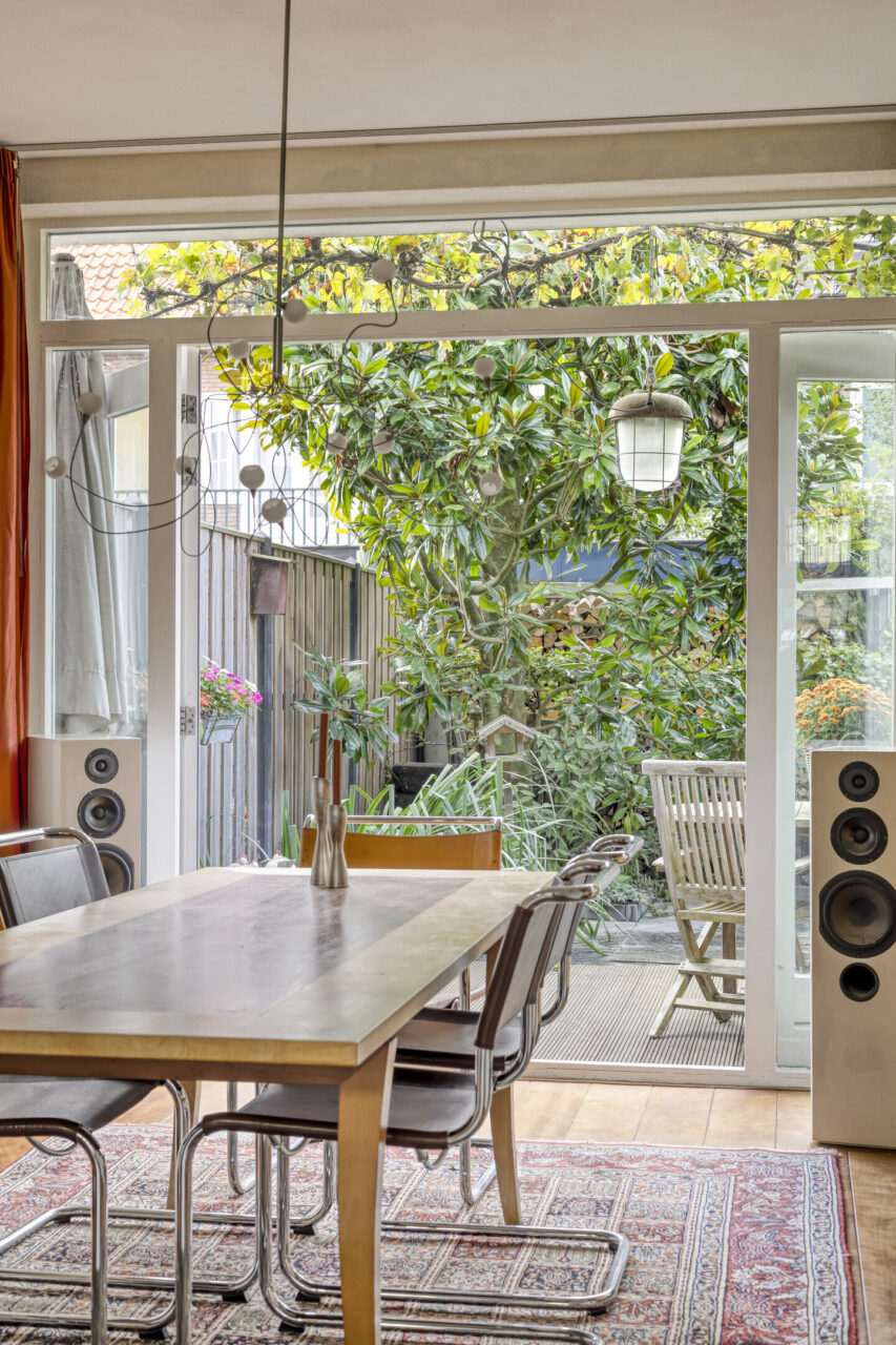 The careful choices made during renovations have given the house a special character. Everything feels right, from the layout to the specially designed details. Architecturally too, the house has been well considered, which can be seen for instance in the conservatory-style dormer that lets in beautiful natural light. The garden feels like a green oasis with lush grapevines guided along a specially designed balcony support. Here you can enjoy the sun, the peace and the charm of the neighbourhood. The practical, lockable rear access also makes the garden highly functional.