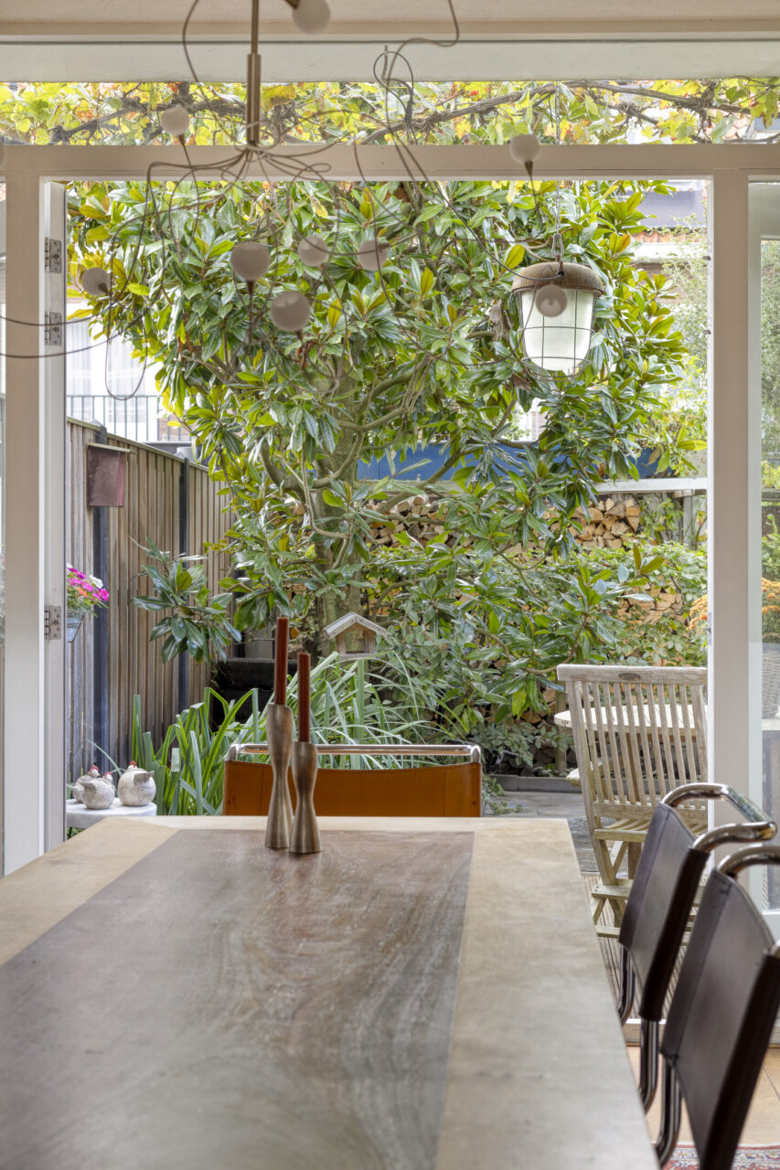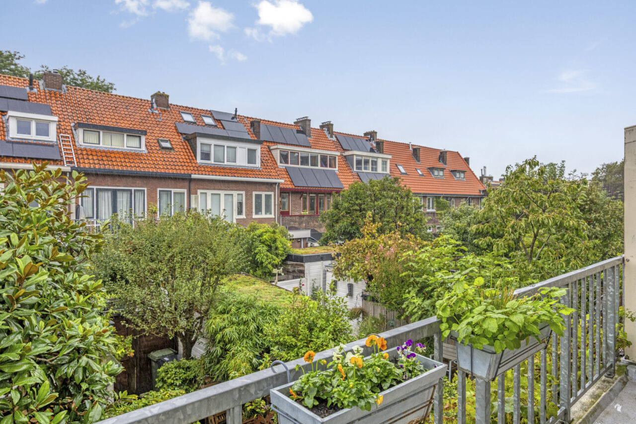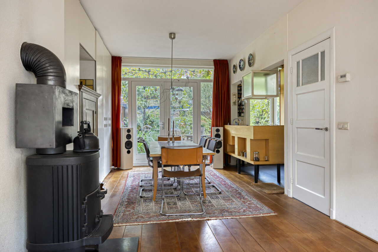 The careful choices made during renovations have given the house a special character. Everything feels right, from the layout to the specially designed details. Architecturally too, the house has been well considered, which can be seen for instance in the conservatory-style dormer that lets in beautiful natural light. The garden feels like a green oasis with lush grapevines guided along a specially designed balcony support. Here you can enjoy the sun, the peace and the charm of the neighbourhood. The practical, lockable rear access also makes the garden highly functional.