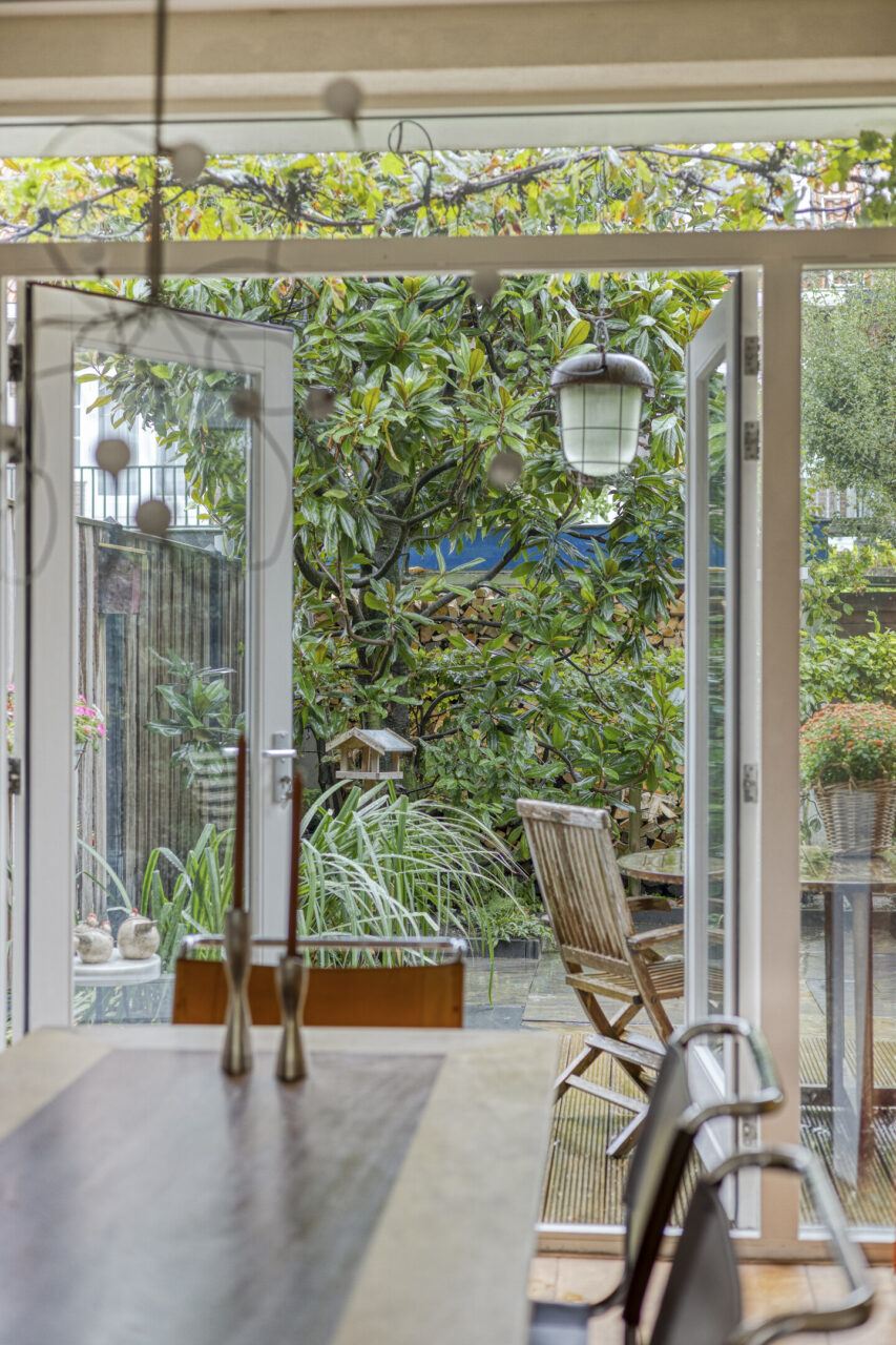 • Openslaande deuren naar de tuin die 180 graden open kunnen