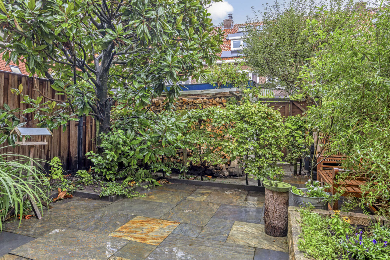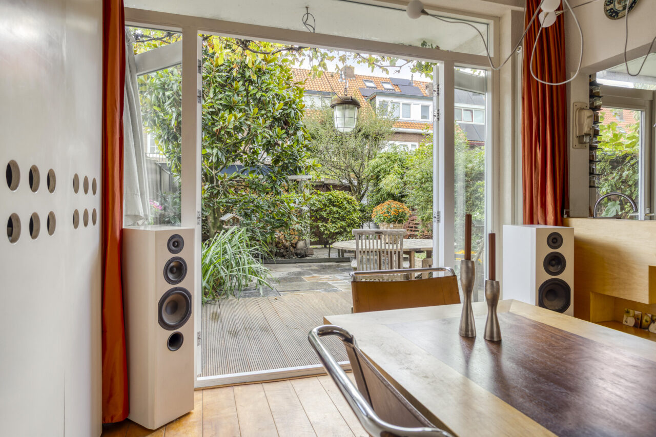 De zorgvuldige keuzes bij de verbouwingen geven de woning een bijzonder karakter. Alles klopt, van de ruimtelijke indeling tot de speciaal ontworpen details. Ook architectonisch is er goed naar de woning gekeken, wat terug te zien is in onder meer de serre-achtige dakkapel die het licht prachtig binnenlaat. De tuin voelt als een groene oase met weelderige druivenranken, handig geleid langs een speciaal ontworpen balkonvoet. Hier geniet je van de zon, de rust en de charme van de wijk. Het praktische, afsluitbare achterom maakt de tuin bovendien extra functioneel.