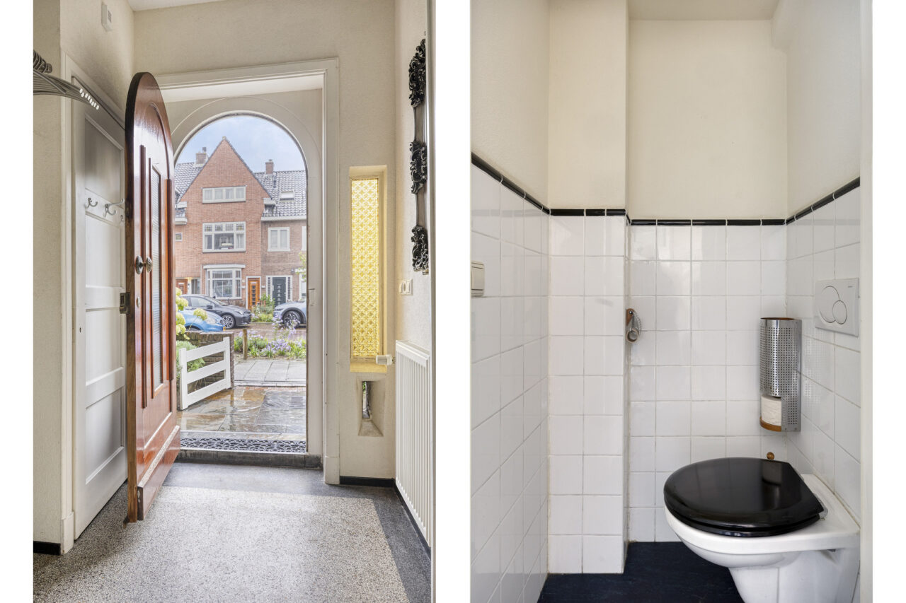 Dit charmante jaren ’30 huis aan de Jan Haringstraat 28 voelt direct prettig aan zodra je binnenkomt. Originele details zoals het tochtportaal met prachtige granito vloer, de paneeldeuren, de erker met glas-in-lood en de bijzondere brievenbus in de gevel zijn bewaard gebleven en geven de woning een integer en uniek karakter. Ook de robuuste voordeur met sierlijke ronding en hoge zijramen is een echte blikvanger. Deze elementen worden moeiteloos gecombineerd met moderne gemakken.