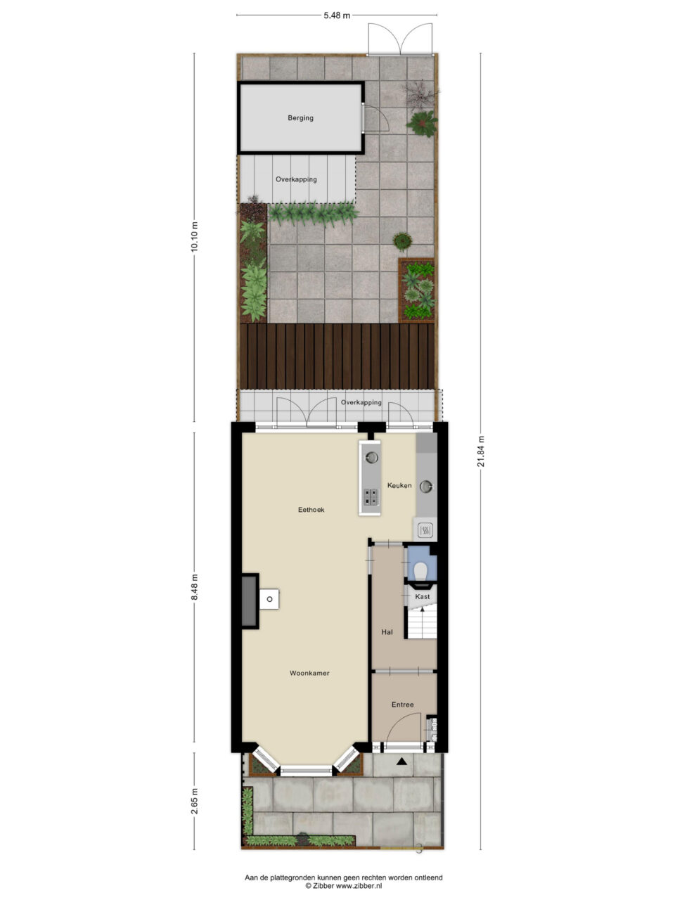 • Zonnige tuin op het westen met handige indeling, druivenstaken, stenen berging en afsluitbaar achterom