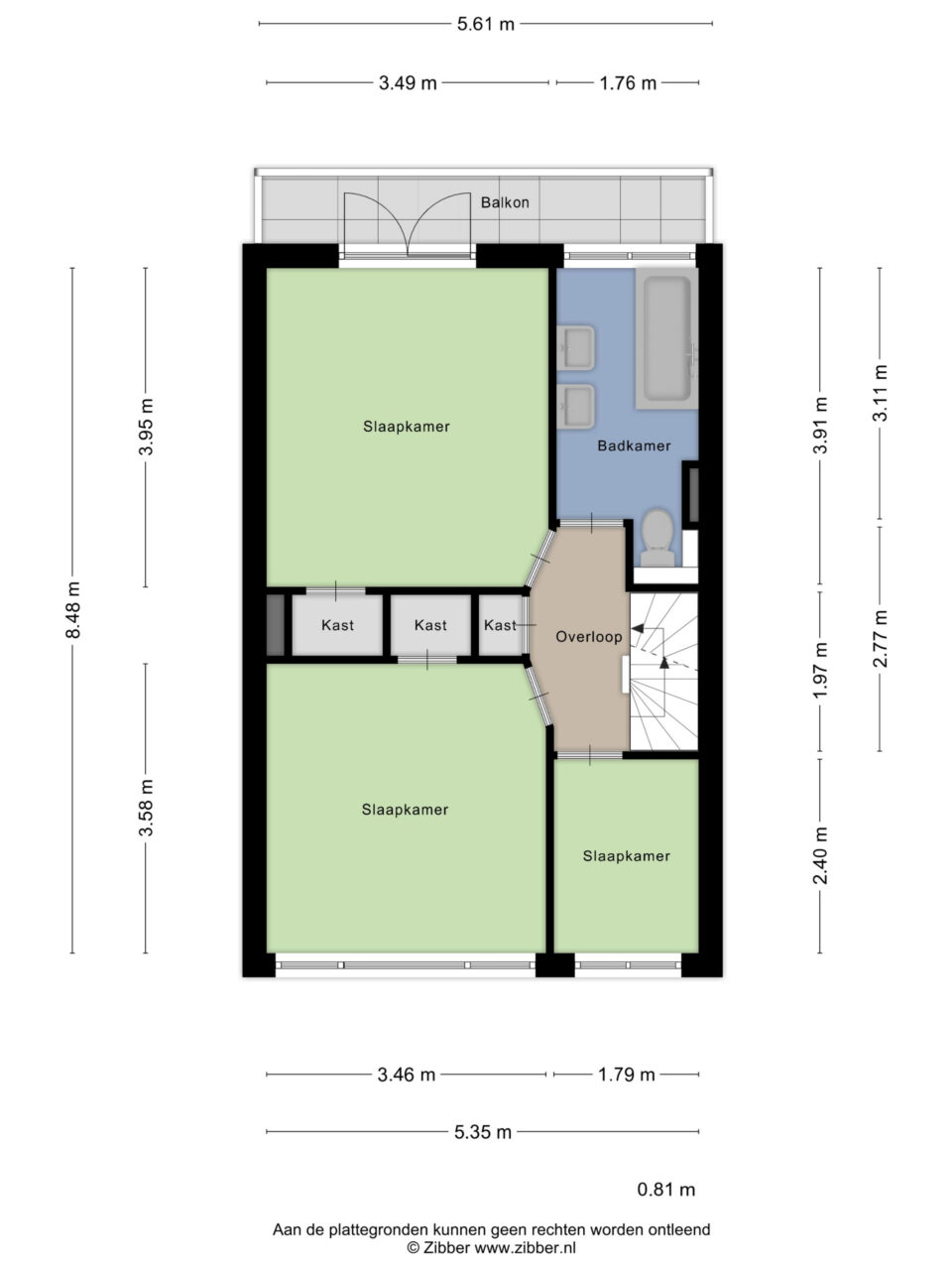 overloop. Grote slaapkamer aan de achterzijde met vaste kasten en openslaande deuren naar het balkon. Badkamer met plat ligbad, dubbele wastafel, toilet en originele granito vloer. Twee slaapkamers (één met inbouwkast) aan de voorzijde, waarvan één ideaal als werkkamer.