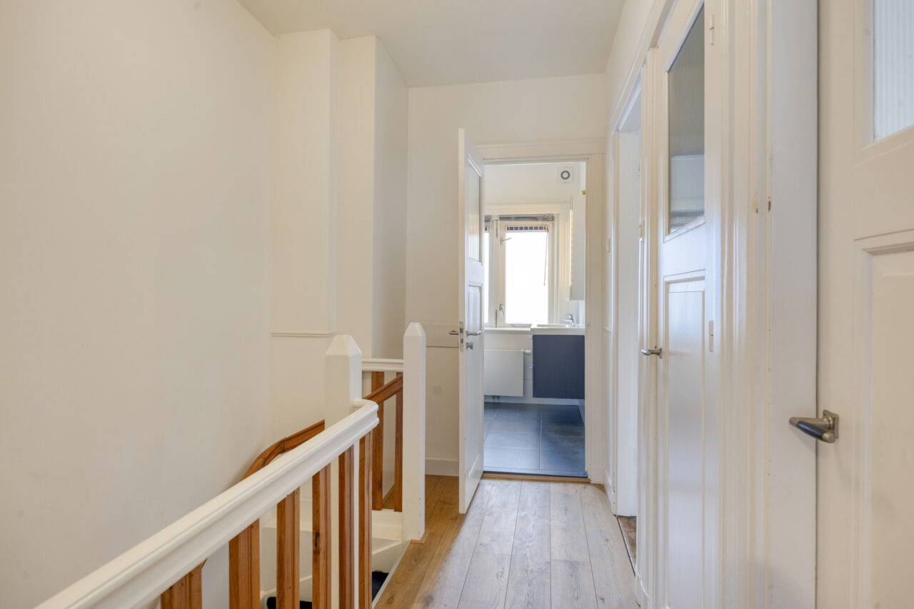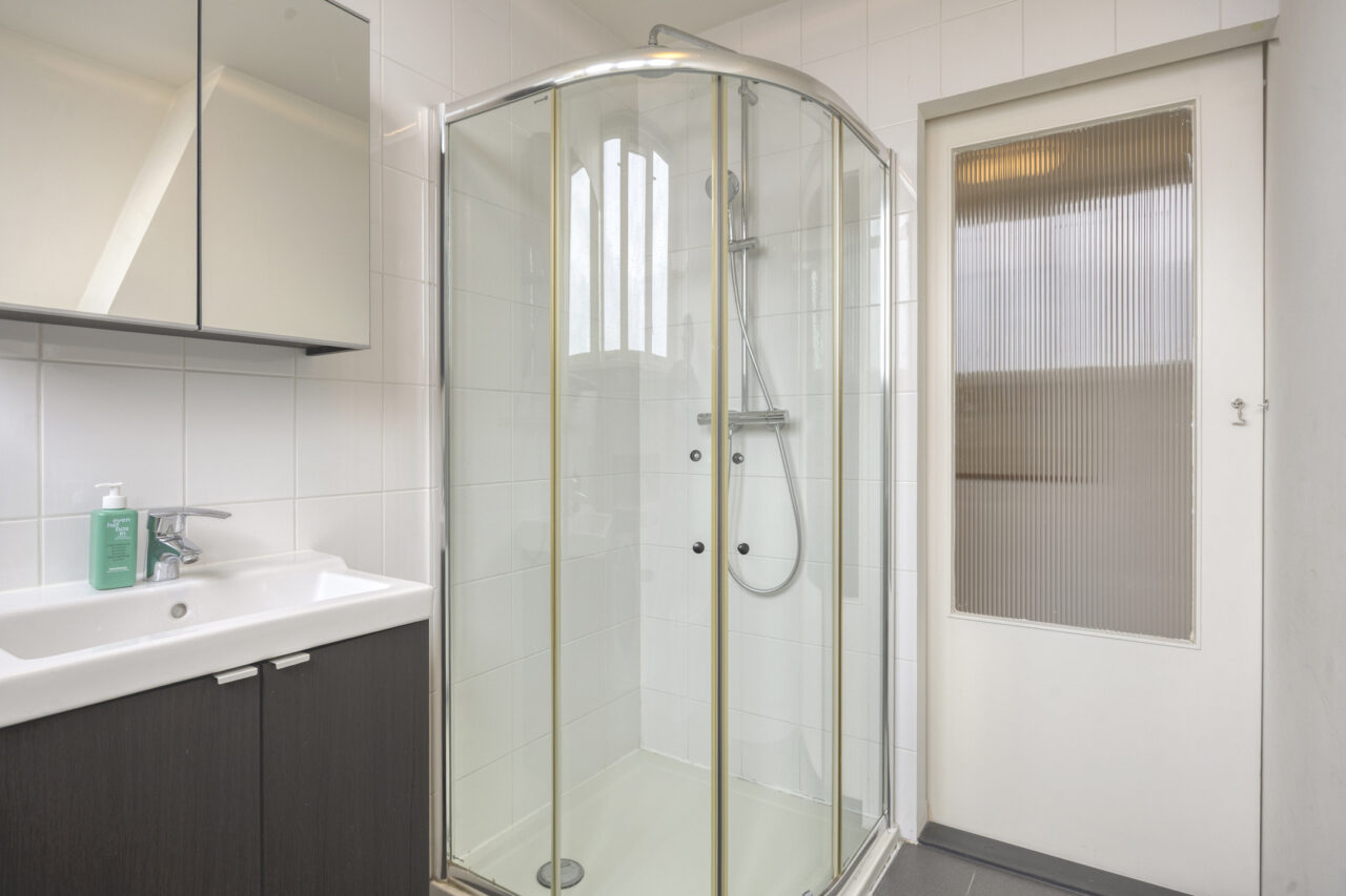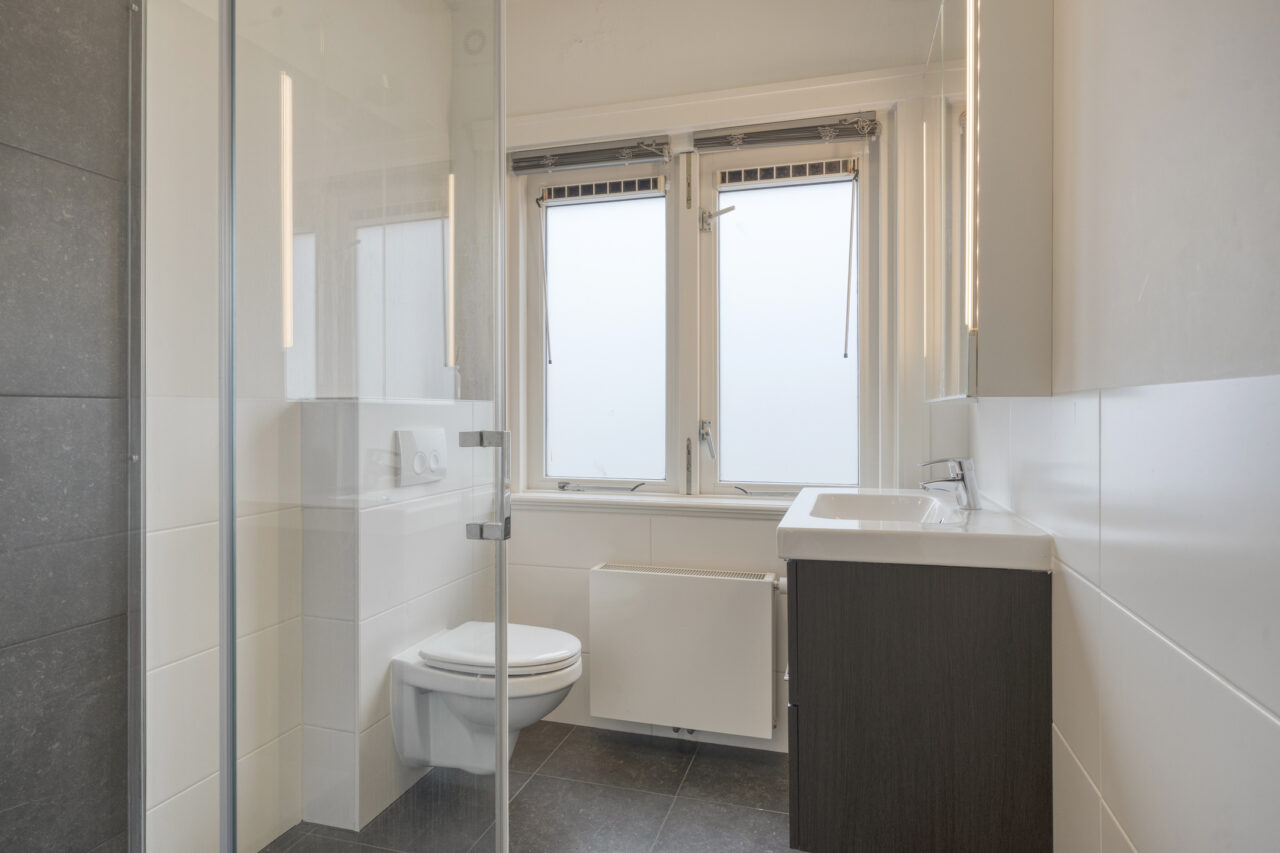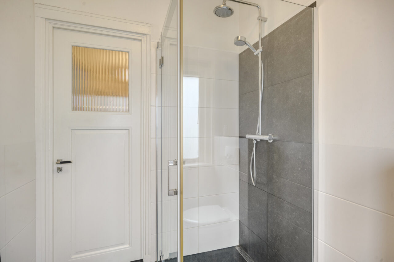Op deze verdieping bevinden zich twee ruime slaapkamers en een derde, kleinere slaapkamer. De moderne badkamer is verzorgd en tijdloos uitgevoerd en beschikt over een inloopdouche, vloerverwarming, hangend toilet en een groot wastafelmeubel met dubbele laden en royale bergruimte.