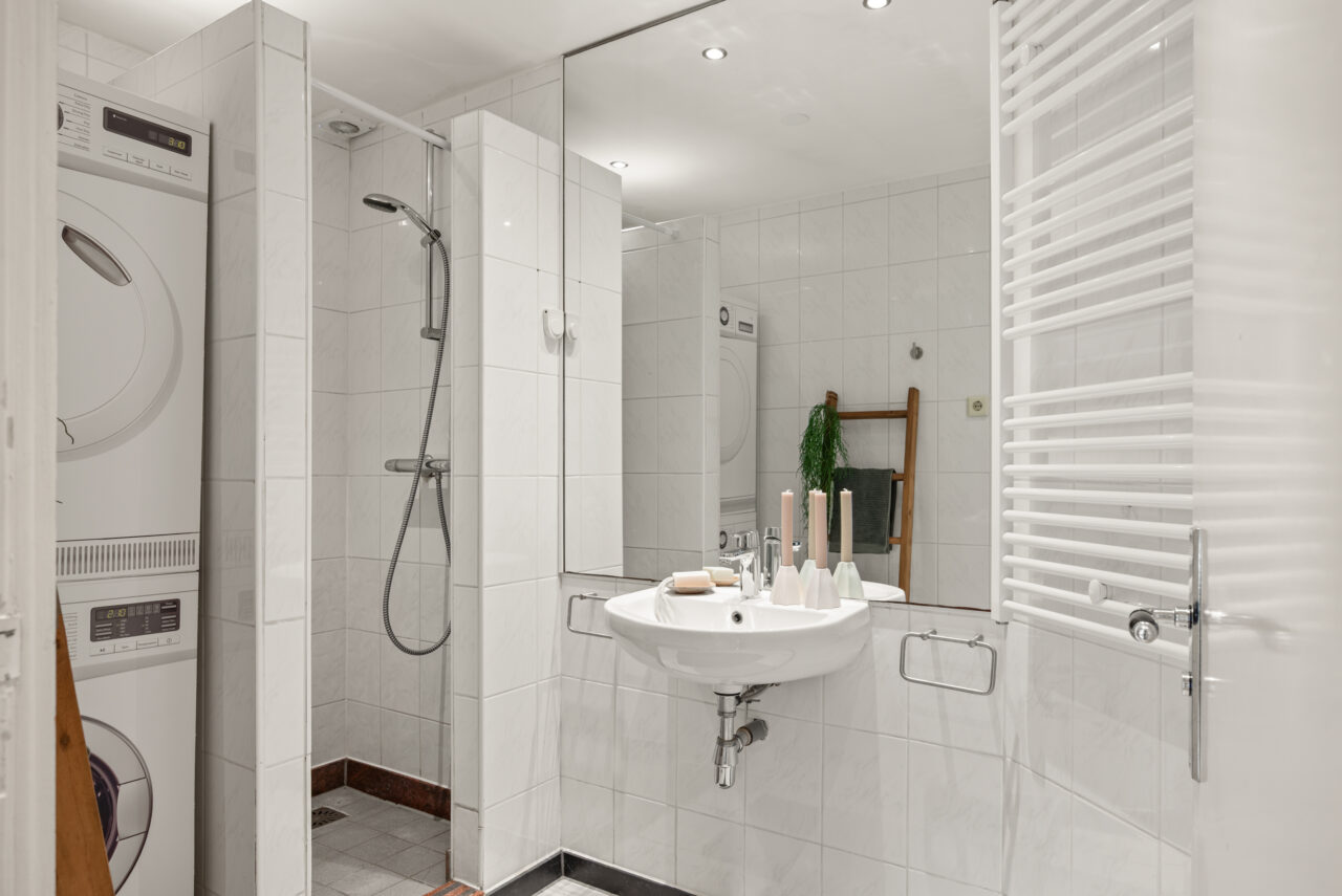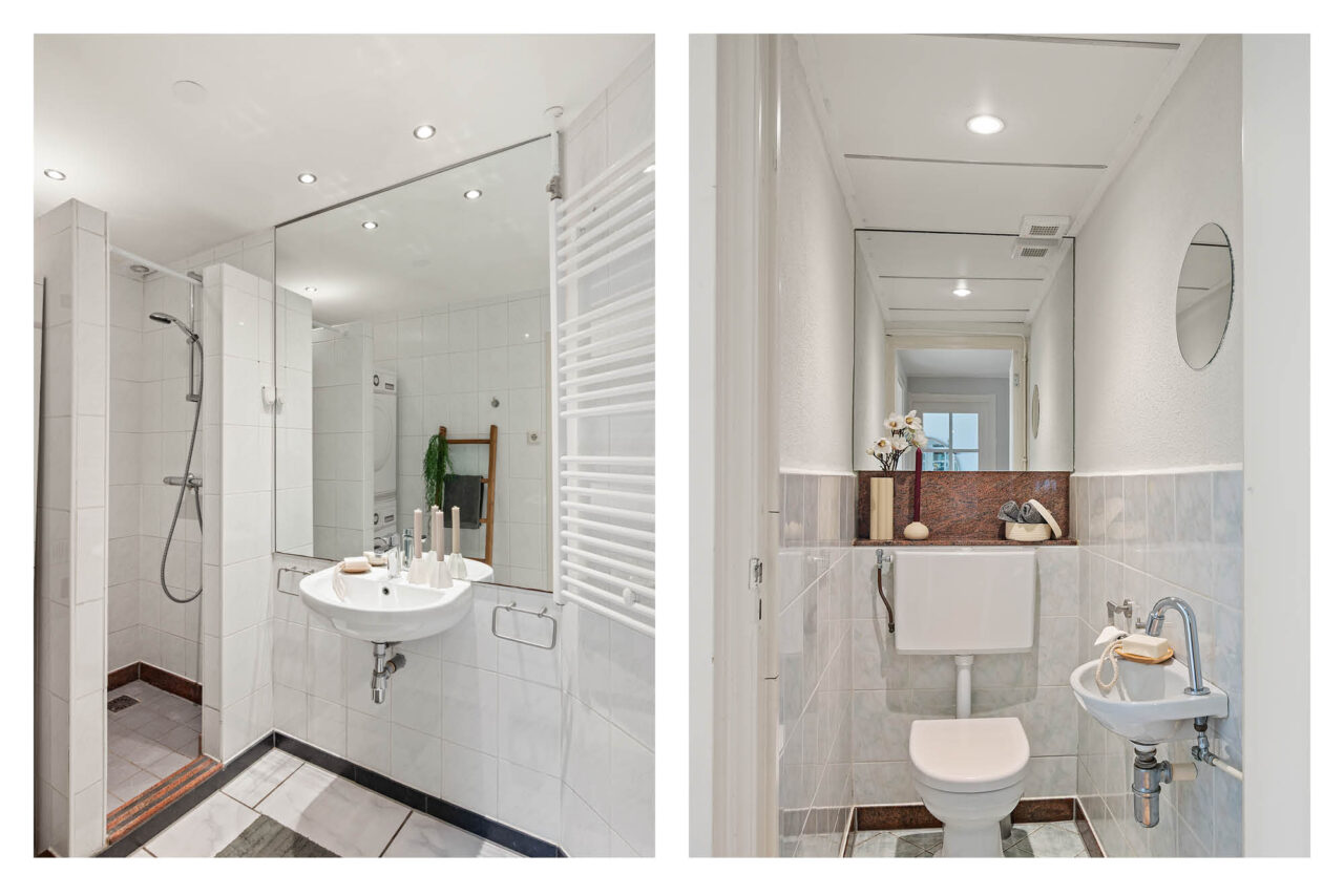 De woning beschikt over twee goed bemeten slaapkamers, waarvan één aan de achterzijde met toegang tot het balkon en één aan de voorzijde. Centraal in de woning bevinden zich de badkamer (2010) met douche, wastafel en aansluitingen voor wasmachine en droger, evenals een separaat toilet.