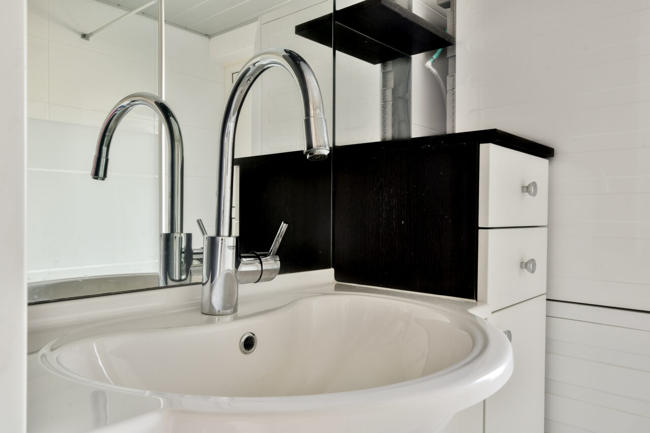 • Ruime badkamer met inloopdouche, badkamermeubel, toilet, wasmachine- en drogeraansluiting én toegang tot balkon