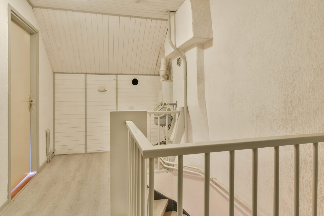 Overloop met toegang tot alle vertrekken en trapopgang naar de zolderverdieping. Ruime badkamer met inloopdouche, badkamermeubel, toilet, opstelling voor wasmachine en droger én toegang tot het balkon. Grote slaapkamer over de volle breedte van de woning, eenvoudig terug te brengen naar twee slaapkamers. Daarnaast een fijne voorzijkamer.